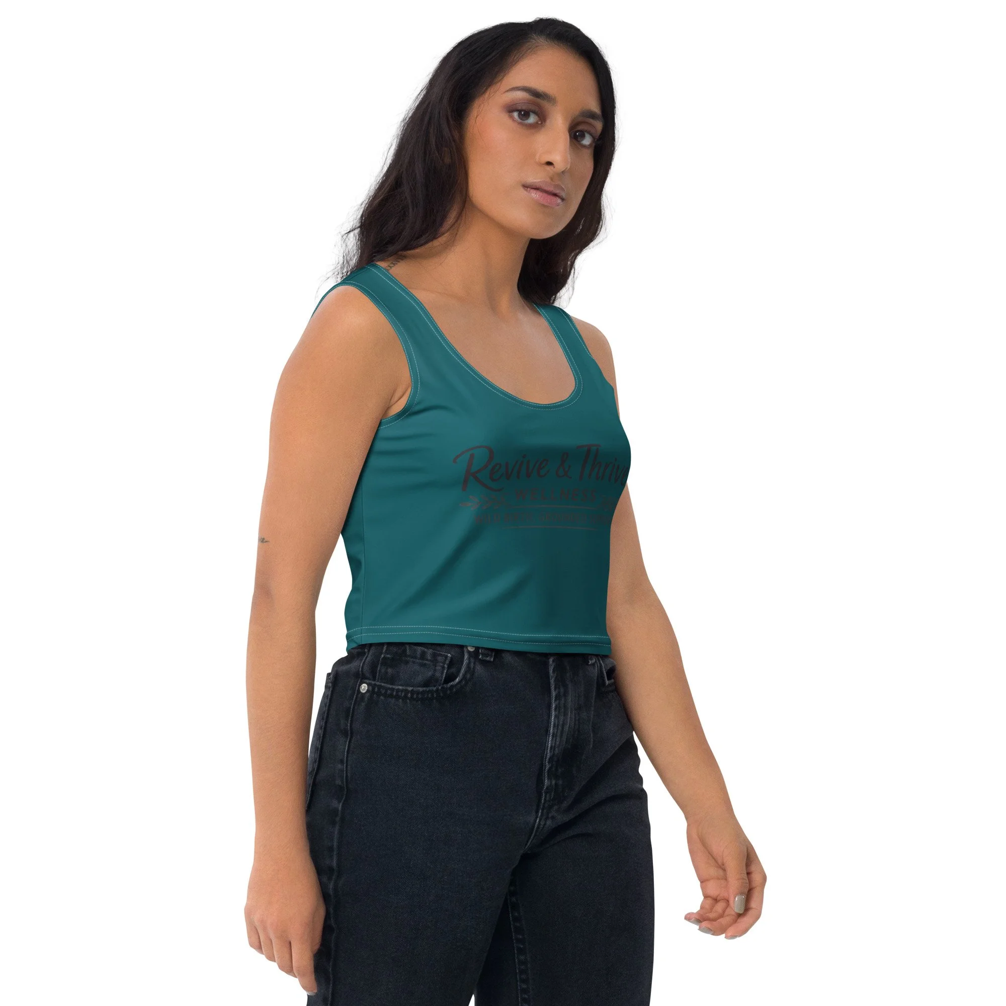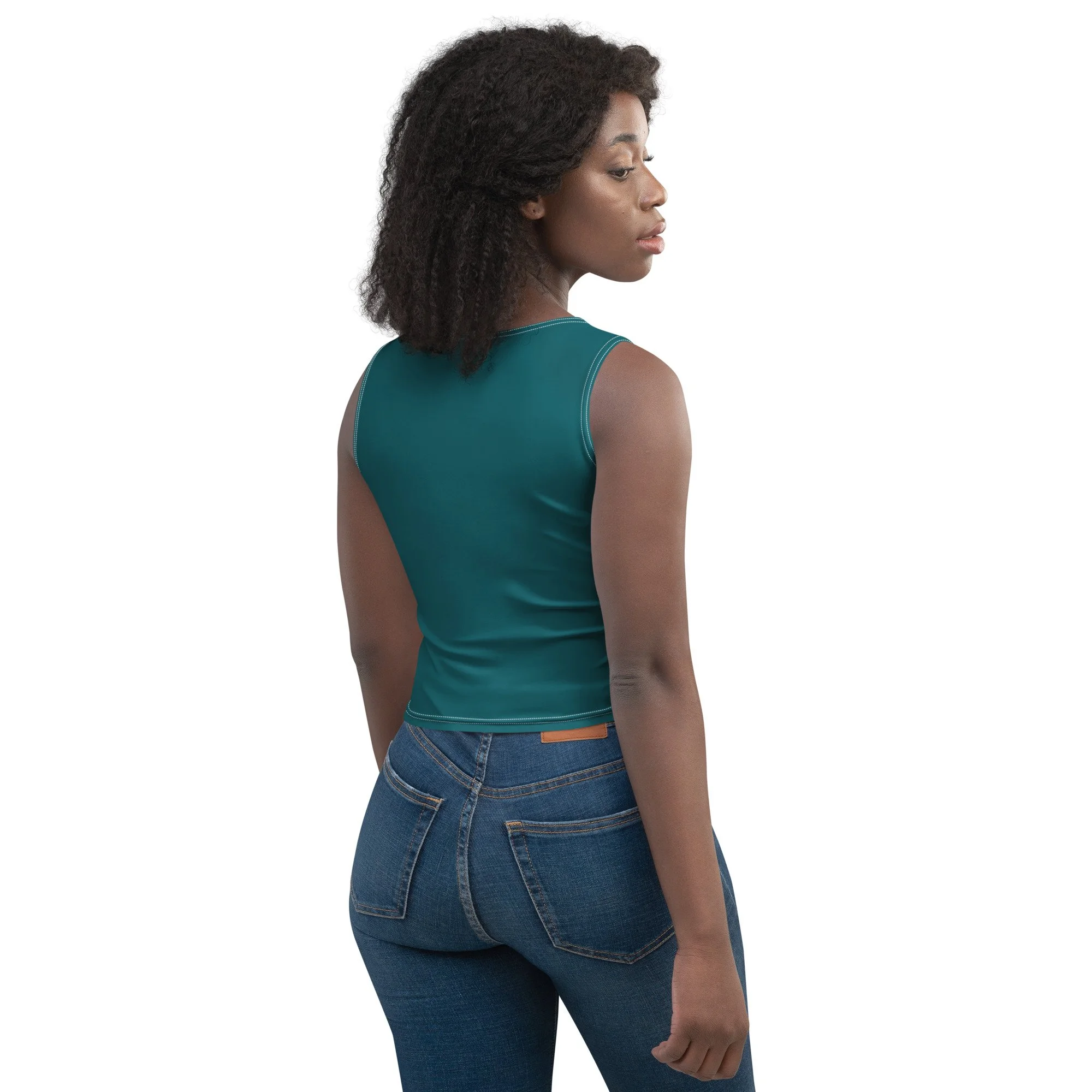 Look fabulous in an all-over printed, body-hugging crop top.